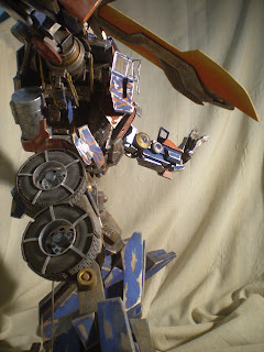 I leave the final gallery of my papercraft model adaptation created by Julius Perdana (Paper-replika) in this version of Optimus Prime, the main character of the movie Transformers in battle pose with extra details both parts saber and re-detailed also parts in hand painting technique in general as scratches and dirt.