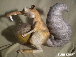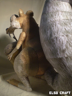 Aquí les dejo el modelo terminado de Scrat, la popular "ardilla" de las películas de la Era de Hielo, es un diseño propio partiendo de una figura de plástico y usando el programa para 3D Sketchup logre obtener las plantillas para armar un modelo de papel de unos 40 cm de altura.