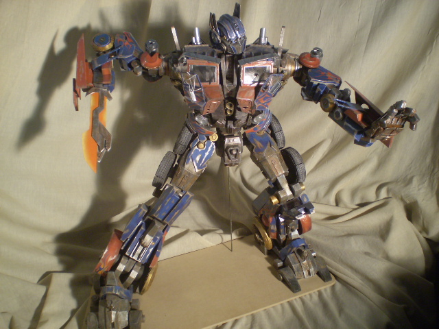 Les dejo la galería final de mi adaptación del modelo papercraft creado por Julius Perdana (Paper-replika) en esta versión de Optimus Prime, personaje protagonista de la pelicula Transformers, en pose de batalla con detalles extra tanto en piezas como el sable y re detallado de partes ademas en técnica de pintura a mano en general como rayones y suciedad.